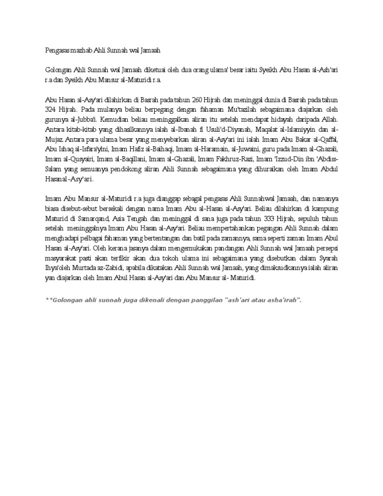 Pengasas Ahli Sunnah Wal Jamaah Pdf Document