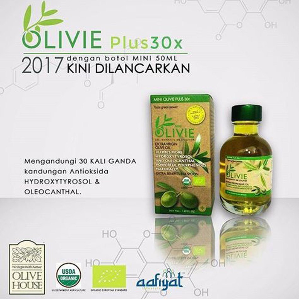 Terdapat dua komponen utama di dalam olivie plus 30x iaitu hydroxytyrosol dan polifenol. Dapatkan sekarang dan rasai keunikan olivie minyak zaitun asli dari olive house. 30x ganda kebaikan semulajadi menjadikan ianya pilihan utama.