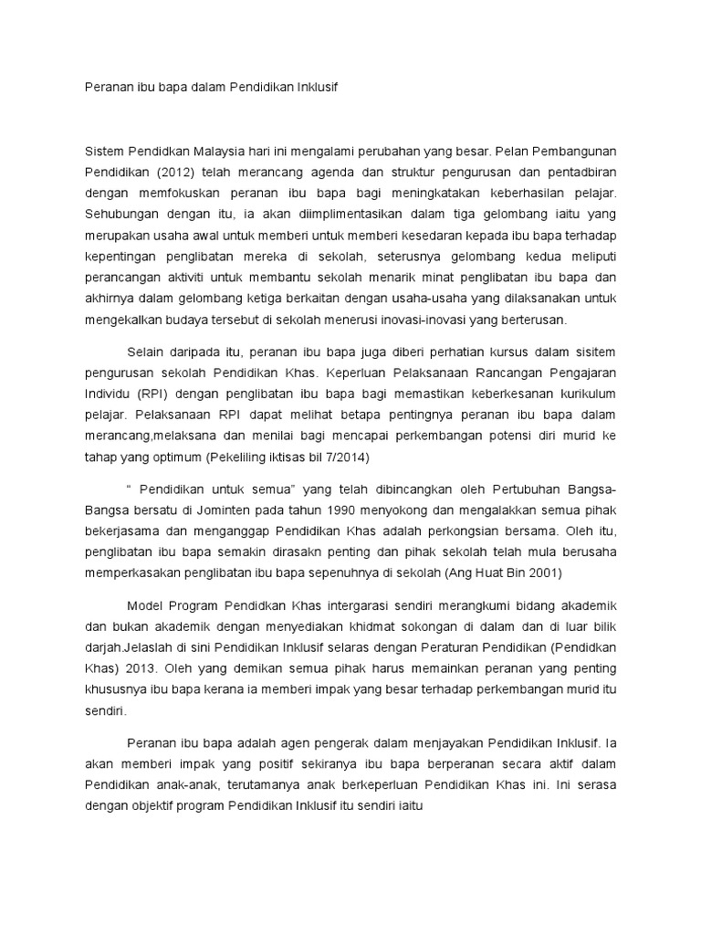 Peranan Ibubapa Dalam Pendidikan Inklusif