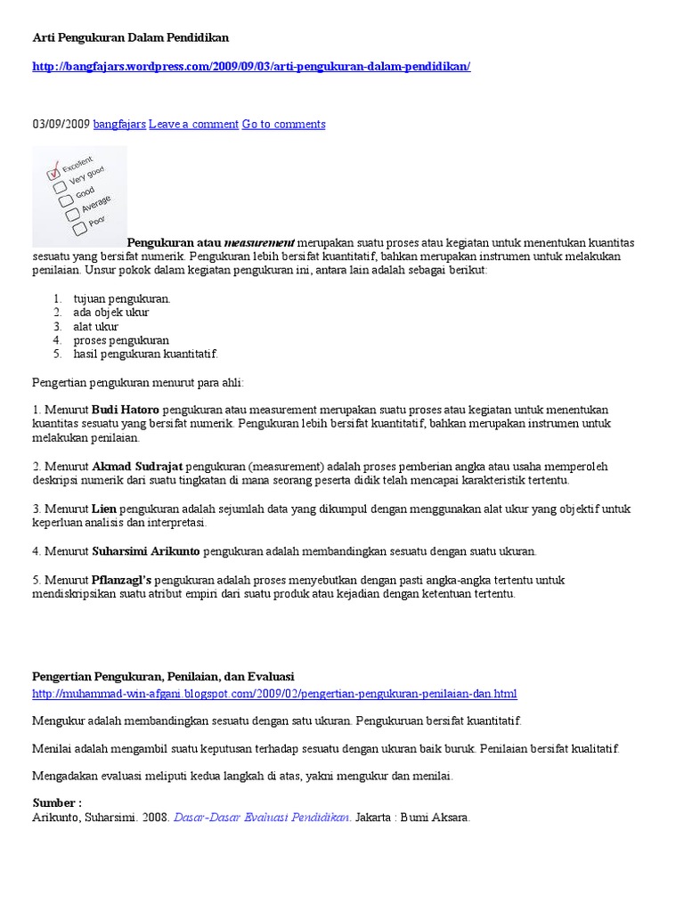 Arti Pengukuran Dan Penilaian