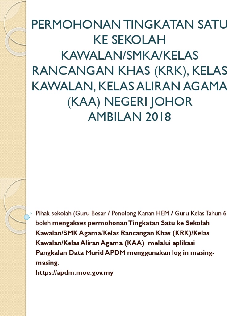 Permohonan Kemasukan Murid Tingkatan 1 Ke Sekolah Kawalan Smka 2c Smka Kerian Tmua Dan Kaa Bagi Negeri Perak Tahun 2018