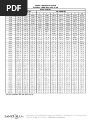Bank Islam Personal Loan Monthly Repayment Table Pinjaman Peribadi