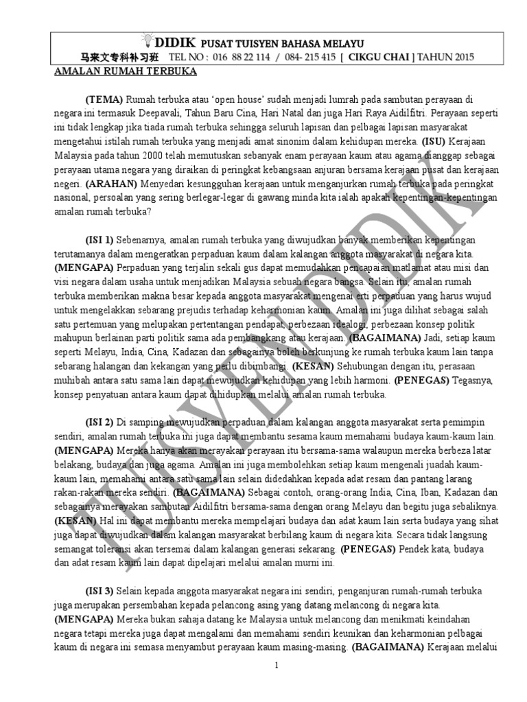 Laman Bahasa Melayu Spm Karangan Kepetingan Rumah Terbuka Di Malaysia