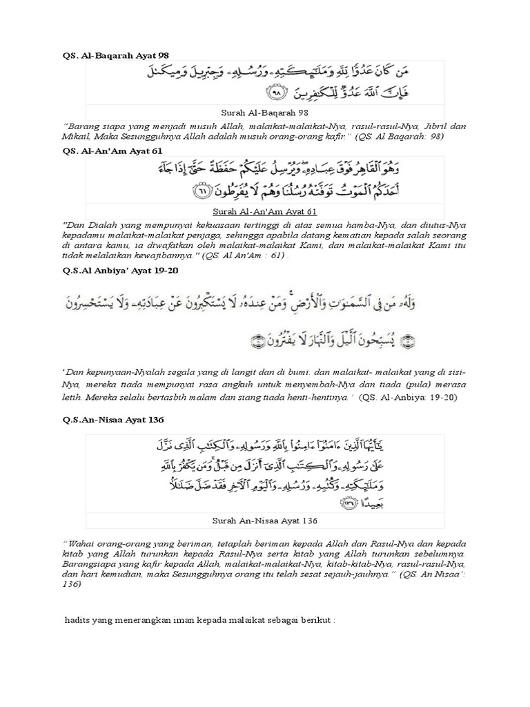 Dalil Dan Hadist Iman Kpd Malaikat