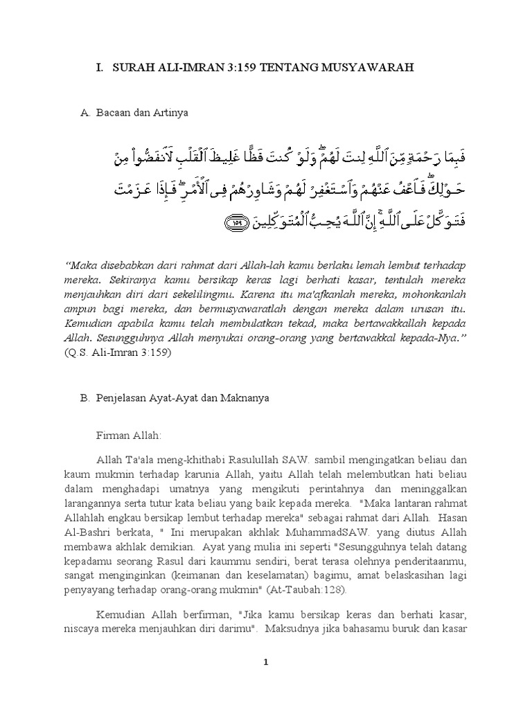 Makalah Agama Surah Ali Imran 159 Dan Asy Syura 38