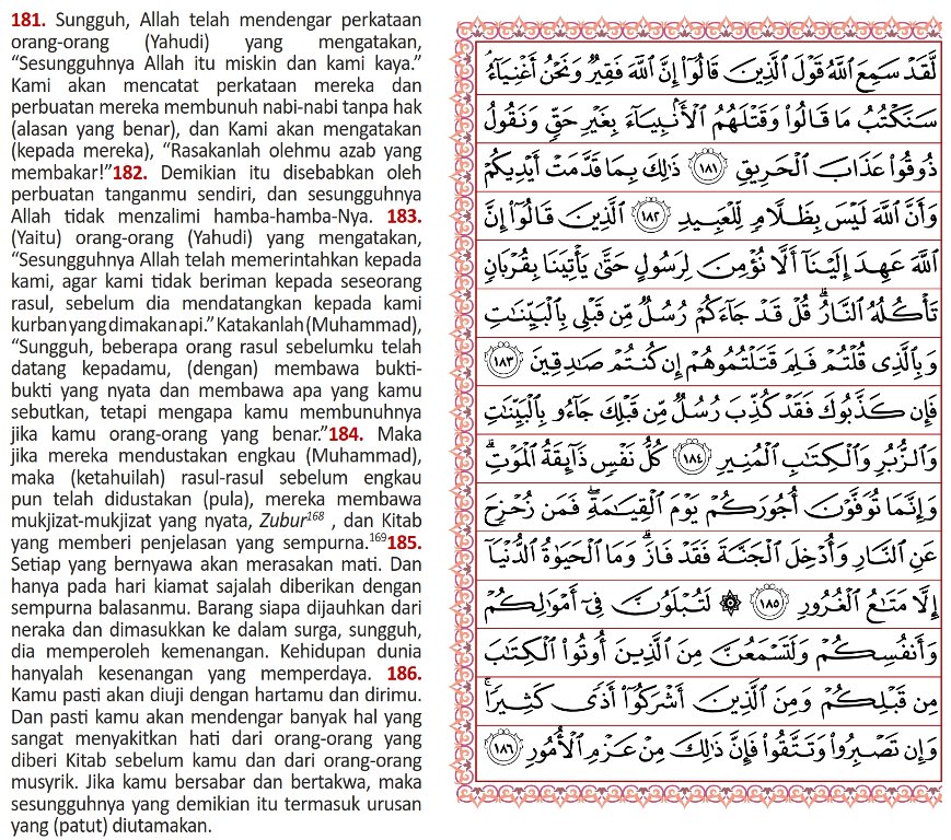 Surat Ali Imran Ayat 181 182 183 184 185 Dan Artinya Terjemahannya Alquran Surat Ayat