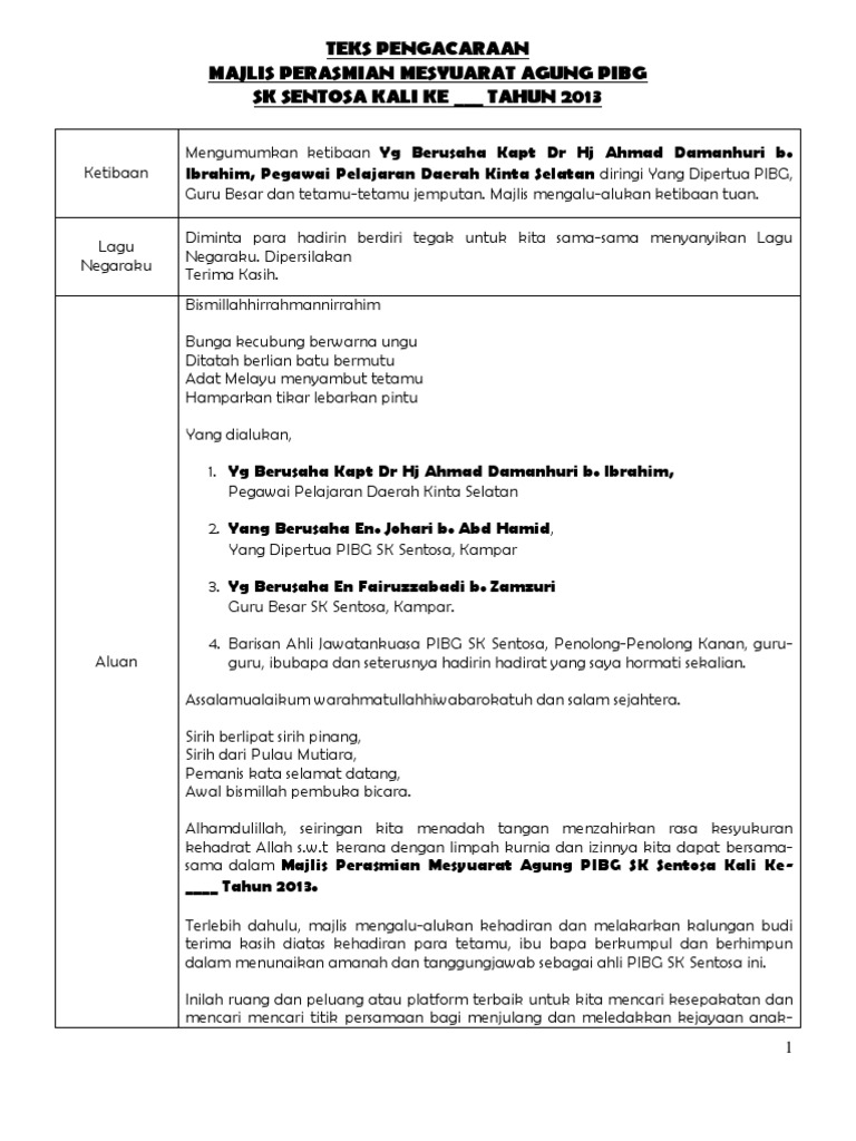 Teks Pengacaraan Mesyuarat Pibg Pdf Document