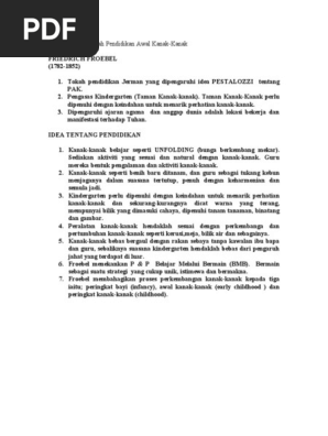 Sejarah Tokoh Tokoh Pendidikan Awal Kanak Kanak Serta Pendapat Tokoh Dalam Pendidikan